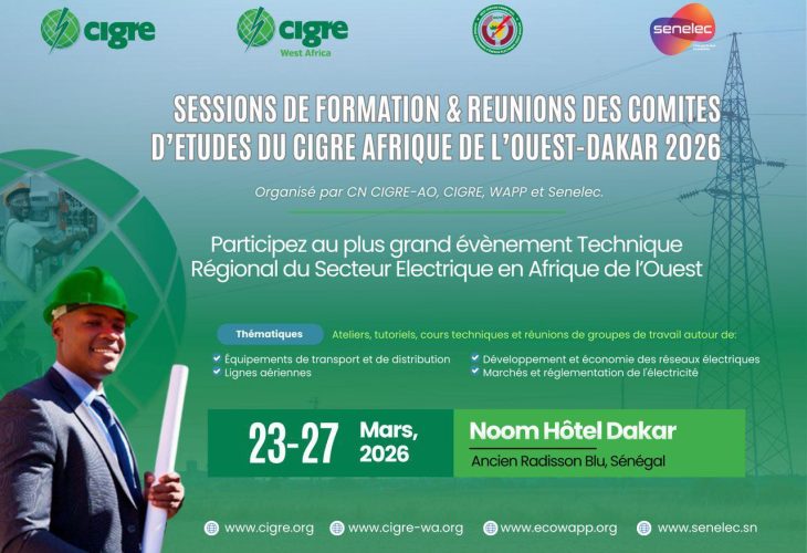 Renforcement des compétences et intégration énergétique dans l’espace de la CEDEAO : Dakar accueille une centaine d’Experts Dans le cadre de la formation sur les réseaux haute tension et les enjeux de sécurité énergétique, le Sénégal abrite, du 23 au 27 mars 2026 à Dakar, une rencontre internationale du Comité national Afrique de l’Ouest du Conseil international des grands réseaux électriques (CIGRE). Organisée sous l’égide du West African Power Pool (WAPP) et sous la présidence effective du Ministre de l’Energie, du Pétrole et des Mines, Monsieur Birame Soulèye DIOP, cette session réunit des experts issus des sociétés d’électricité des pays membres de la Communauté Économique des États d’Afrique de l’Ouest (CEDEAO). Elle rassemble en effet, près d’une centaine de spécialistes venus de quinze pays de la sous-région et constitue ainsi un cadre privilégié de partage d’expériences, de renforcement des compétences techniques et de réflexion sur les défis actuels des systèmes électriques ouest-africains. Dans son allocution d’ouverture, le Ministre a souligné que cette initiative participe à « une mise à niveau des compétences, un partage d’expertises et un transfert de connaissances » dans un secteur stratégique pour le développement économique et social. Il a insisté sur la nécessité de renforcer la coopération entre les États afin de répondre efficacement aux défis liés à la croissance de la demande en électricité, à l’urbanisation et aux impératifs de compétitivité. Le Ministre a également rappelé que l’électricité constitue un pilier essentiel du développement, soulignant l’importance de garantir un accès universel, fiable et abordable à l’énergie. À cet égard, il a mis en avant la dynamique de coopération régionale portée par le WAPP, qui vise à renforcer l’intégration énergétique en Afrique de l’Ouest. Pour le Sénégal, cette orientation s’inscrit pleinement dans la vision stratégique de l’État, axée sur la sécurisation de l’approvisionnement énergétique, la diversification du mix énergétique et le développement d’infrastructures performantes de transport et de distribution. Réaffirmant l’engagement du Gouvernement à accompagner ce type d’initiatives, le Ministre a exprimé le souhait de voir ces cadres d’échanges se pérenniser, afin de bâtir une expertise régionale solide et harmonisée. Au cours de cette importante rencontre, les échanges ont notamment porté sur des thématiques majeures telles que la planification et l’optimisation des systèmes électriques, le développement des réseaux de transport et de distribution, l’intégration des énergies renouvelables ainsi que la structuration des marchés régionaux de l’électricité. Cette rencontre de Dakar illustre ainsi la volonté des pays de la sous-région de consolider leur coopération, en vue d’accélérer l’accès universel à l’électricité et de construire des systèmes énergétiques modernes, résilients et durables. Suivez-Nous Departments Actualités Agenda Evènements