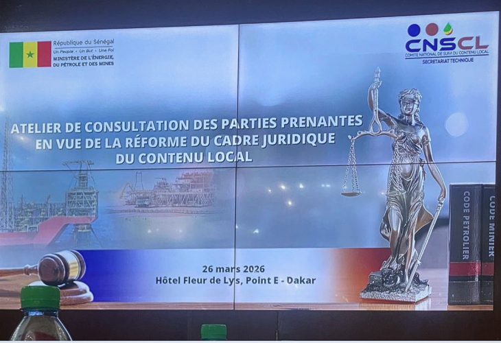 Réforme du cadre juridique du contenu local dans le secteur extractif : l’État renforce son dispositif pour une meilleure valorisation des ressources nationales Le Ministre de l’Énergie, du Pétrole et des Mines, Monsieur Birame Souleye DIOP a, ce jeudi 26 mars 2026, procédé à l’ouverture de l’atelier consacré à la réforme du cadre juridique du contenu local dans le secteur extractif, marquant ainsi une étape importante dans la stratégie de valorisation des ressources naturelles du Sénégal. Cette rencontre a enregistré la participation du Pr Cheikh THIAW représentant le Dr Khadim Bamba DIAGNE Président du CNSCL, du Dr Mor Bakhoum Secrétaire technique du CNSCL, des Directeurs généraux et représentant(e)s de structures étatiques et du secteur privé national, autrement dit l’ensemble des parties prenantes concernées. Dans son allocution d’ouverture des travaux, le Ministre a rappelé que le Sénégal se trouve à un moment décisif de son histoire économique et a, à cet égard, insisté sur la nécessité de maîtriser pleinement les retombées de l’exploitation des ressources naturelles. A ce sujet, il a soutenu que le contenu local doit reposer sur la création de valeur, le transfert de compétences et l’émergence d’acteurs nationaux solides et crédibles, tout en indiquant que cette réforme s’inscrit, par ailleurs, dans la Vision Sénégal 2050, qui vise à faire des ressources naturelles un levier d’industrialisation et de transformation structurelle de l’économie. L’enjeu ne réside plus dans la reconnaissance de l’importance du contenu local, mais dans sa traduction concrète en opportunités économiques, en emplois et en compétences durables pour les Sénégalais, a-t-il précisé. Le Ministre a également mis en garde contre certaines pratiques contraires à l’esprit du contenu local tel que le développement d’entreprises de façade, sans ancrage réel dans l’économie nationale, constituant ainsi un défi majeur à relever avec fermeté. A l’en croire, les projets extractifs doivent désormais contribuer à structurer le tissu industriel local et à positionner durablement le secteur privé national au cœur des chaînes de valeur afin de bâtir un cadre plus cohérent, plus efficace et capable de générer des retombées économiques durables au profit des populations. Au demeurant, le Dr Mor BAKHOUM et le Pr THIAW ont relevés plusieurs défis liés à l’application du cadre actuel, notamment des insuffisances en matière de lisibilité des textes, de suivi des obligations et de cohérence entre les différents segments du secteur extractif, tout en suggérant la mise en place d’un cadre juridique harmonisé applicable aux mines et aux hydrocarbures. Suivez-Nous Departments Actualités Agenda Evènements