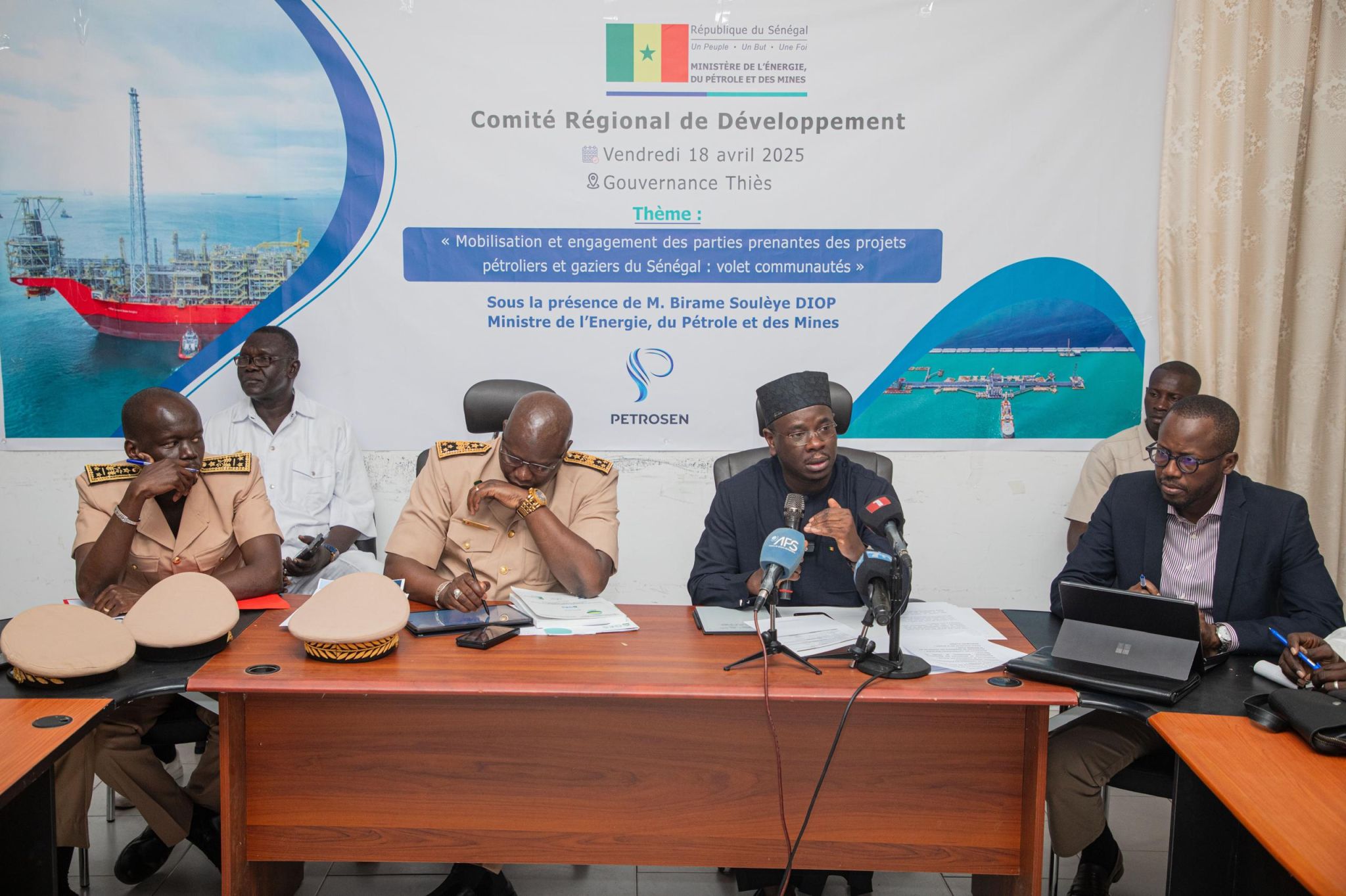 Le Ministre de l’Énergie, du Pétrole et des Mines, M. Birame Souleye DIOP, a présidé ce vendredi 18 avril 2025 une rencontre importante à la Gouvernance de Thiès, dédiée à la mobilisation et à l’engagement des acteurs communautaires et institutionnels locaux autour du projet Sangomar.