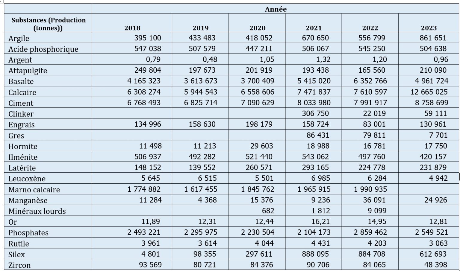 Statistiques de production minière